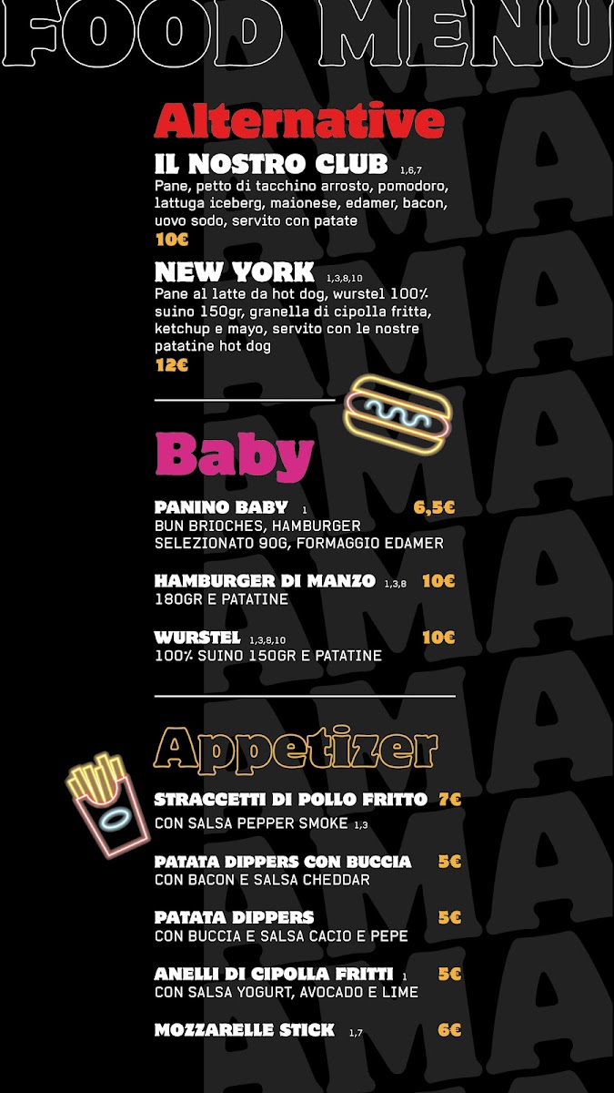 The menu at AMA Burger • Buns & Burger by al Bacaro embraces a straightforward yet thoughtfully crafted selection centered on quality and simplicity. It’s the kind of place where casual bites meet carefully balanced flavors, perfect for a relaxed lunch, an early evening aperitif, or a hearty dinner with friends or family.
